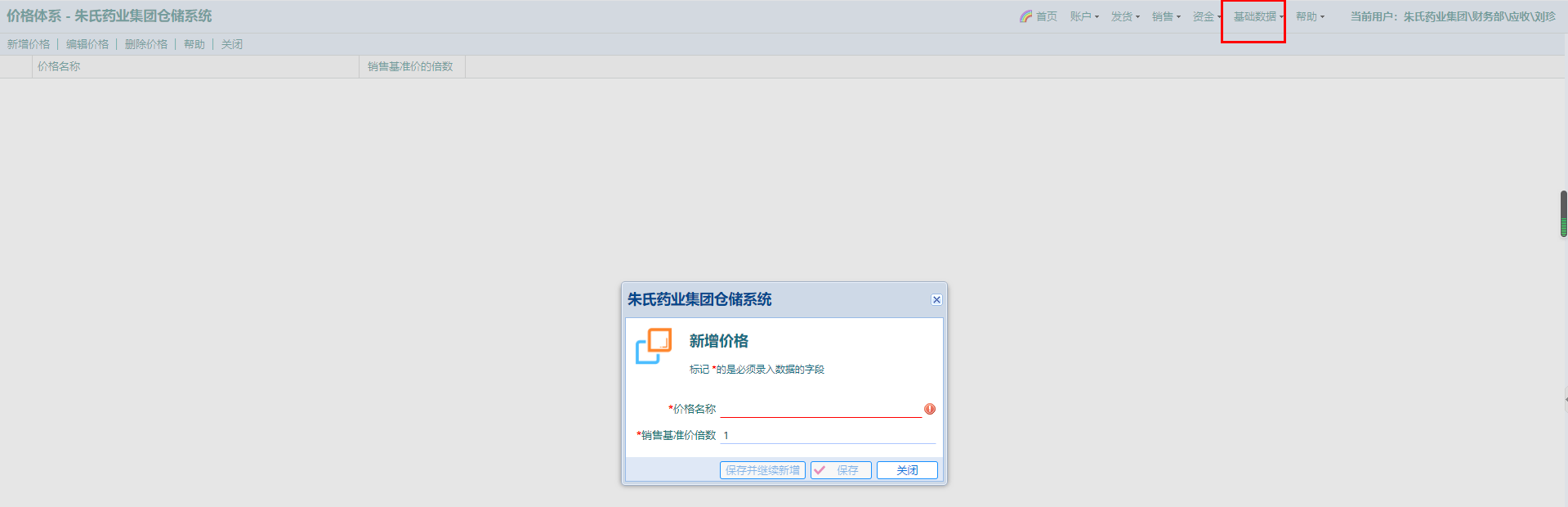 操作:“基础数据——商品——价格体系”