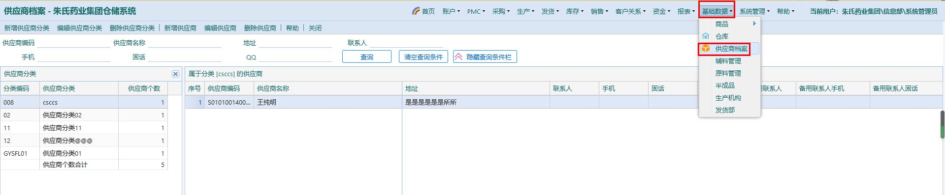 操作:“基础数据——供应商档案”