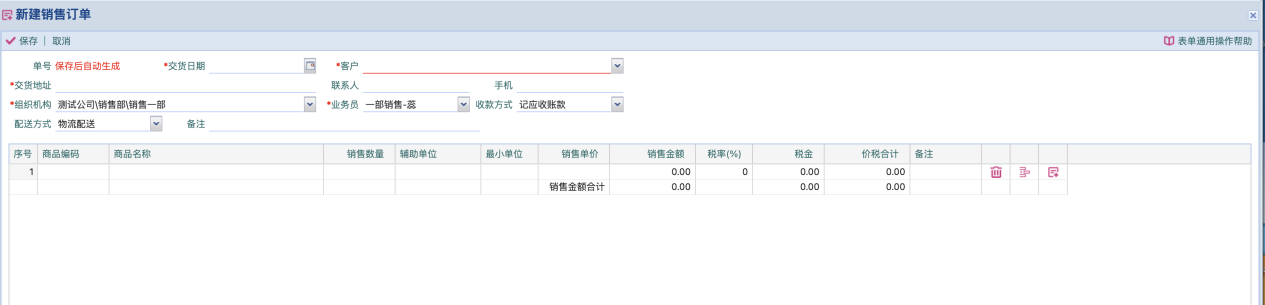 2、新建销售订单