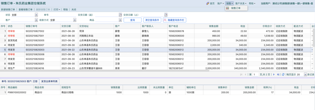 8.1 销售订单 查看分公司内全部销售订单
