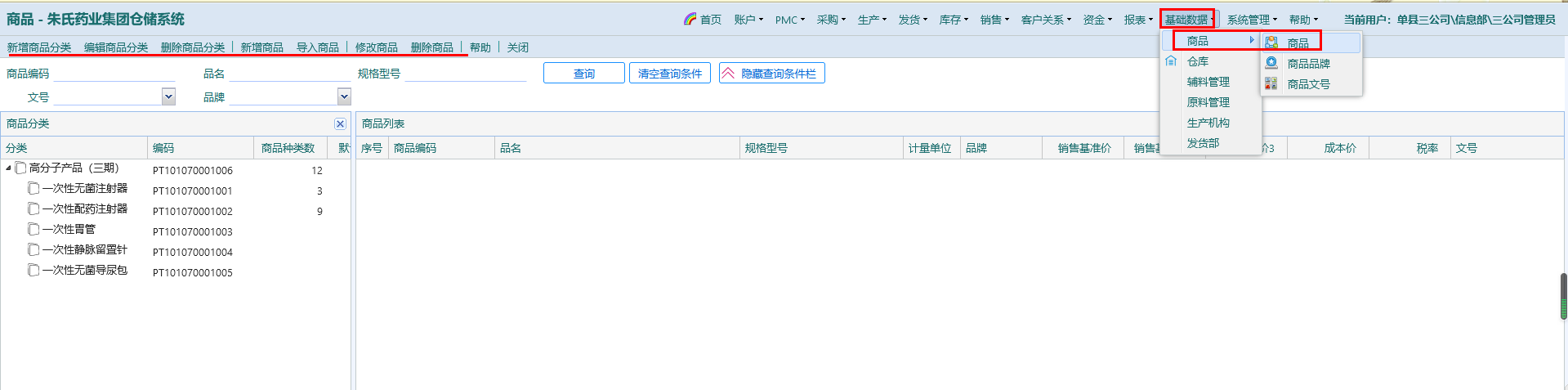 选择“成品分类”,会列出在“基础数据——商品”添加的商品,