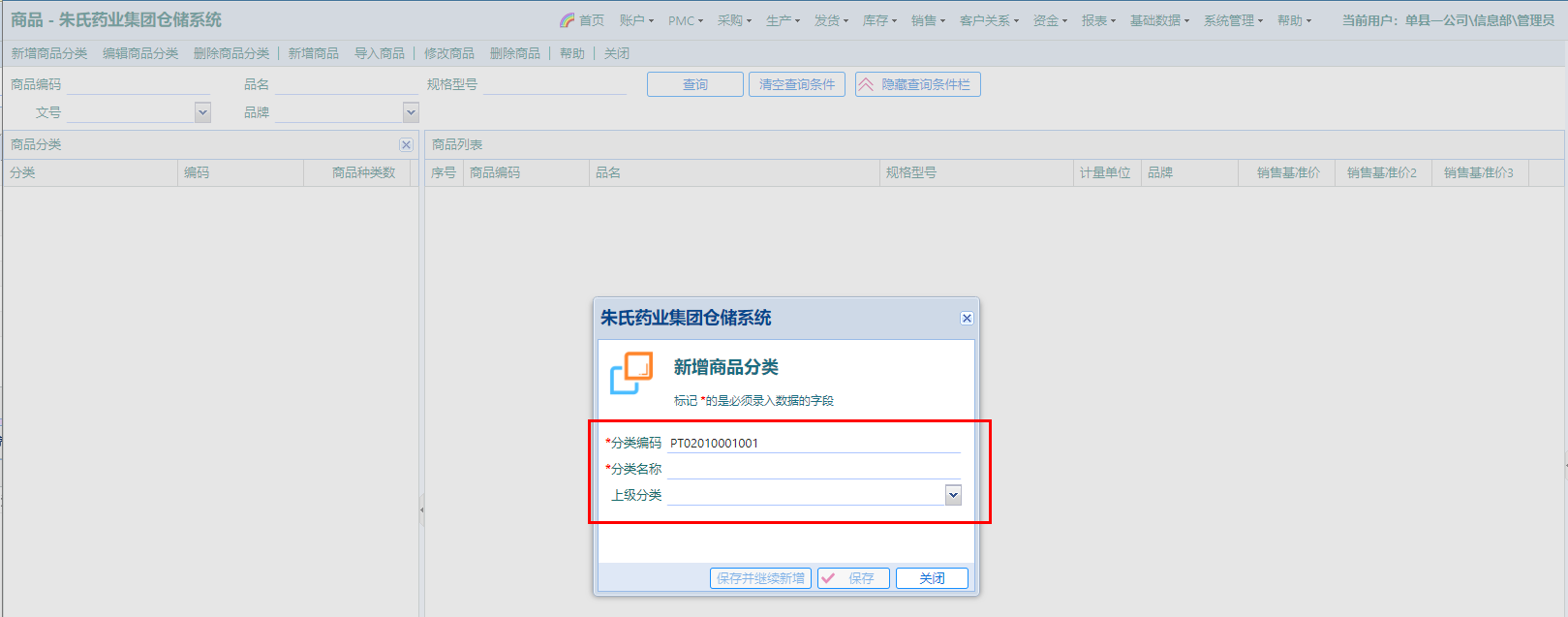 点击按钮“新增商品分类”,弹窗输入: