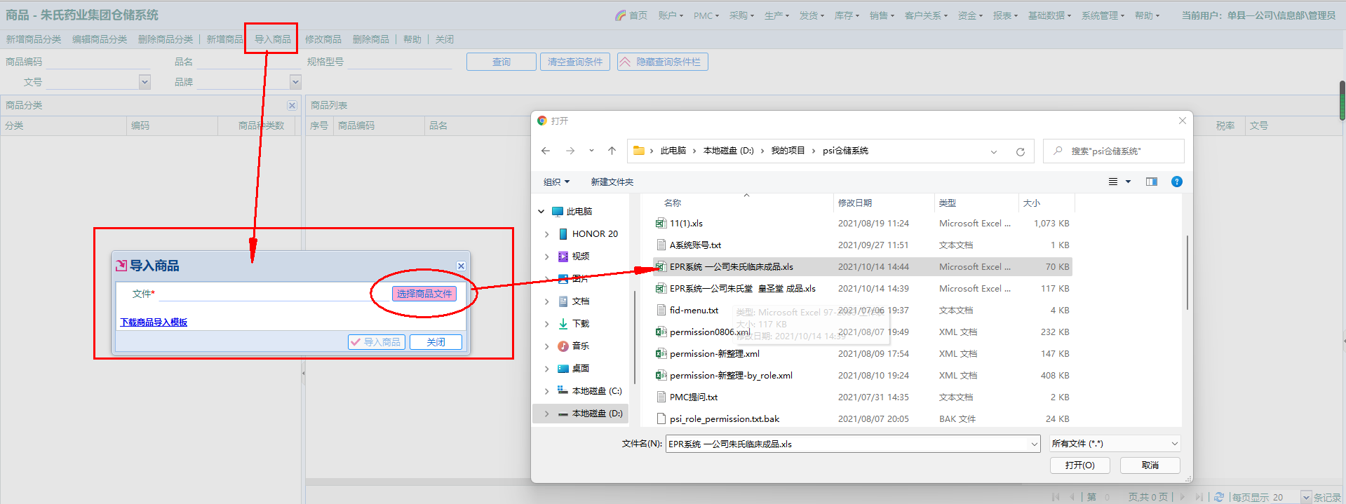 选择文档,导入商品。