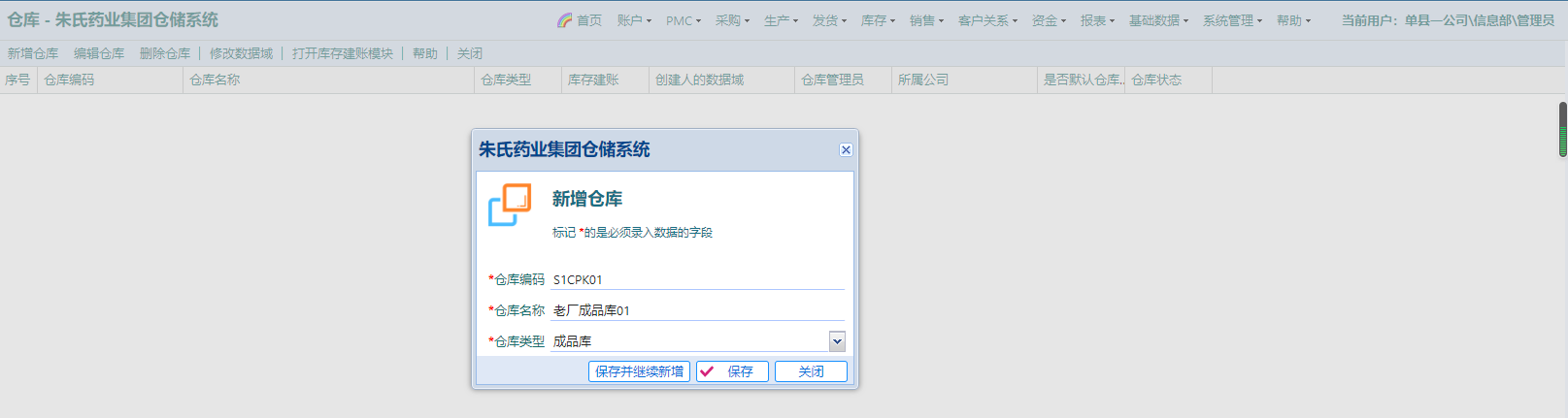 确认建账信息准确无误,点击该按钮,“建账完毕”=“完成”,仓库可以在系统中正式使用,即可以正常出入库操作。