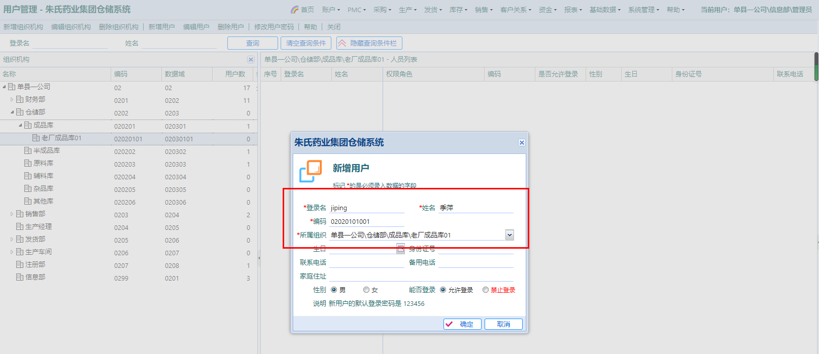 点击按钮“新增用户”,弹窗输入以下信息,