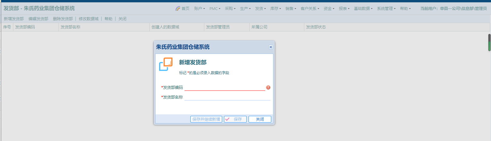 “仓库编码”,必填,不能重复;