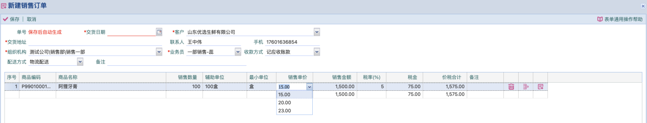 新建销售订单
