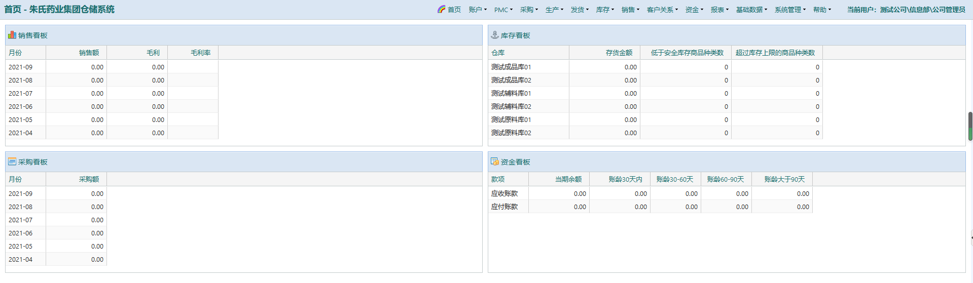 库存看板:本公司全部仓库信息;