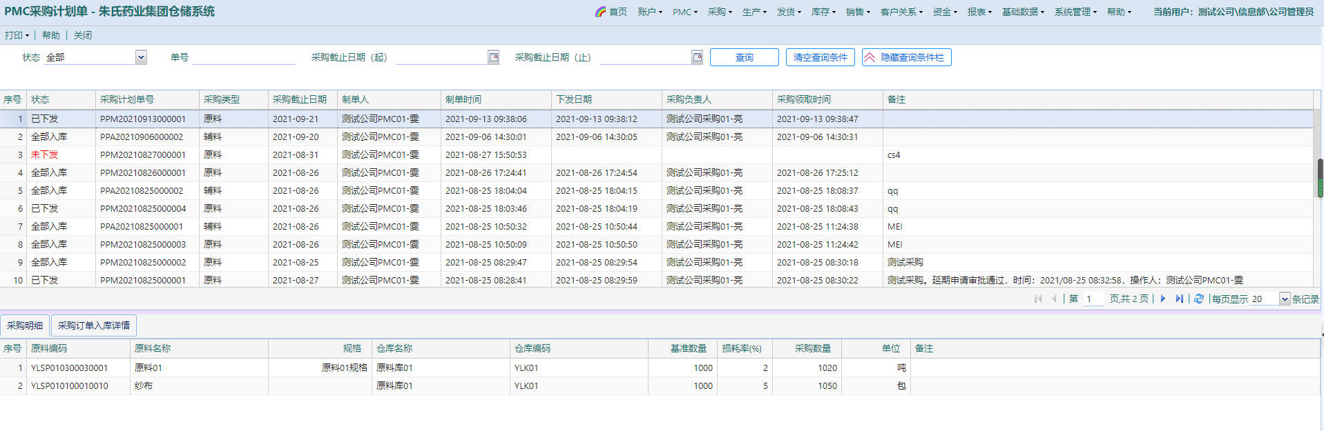 3.1 PMC采购计划单 查看PMC为当前分公司创建的采购计划单