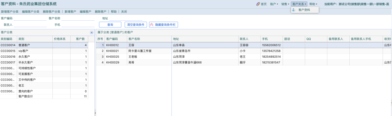 可查看本公司销售员添加的客户资料;