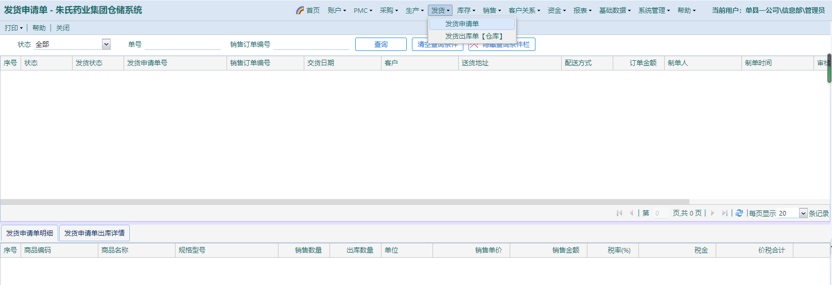 查看“发货申请单”“发货出库单【仓库】”